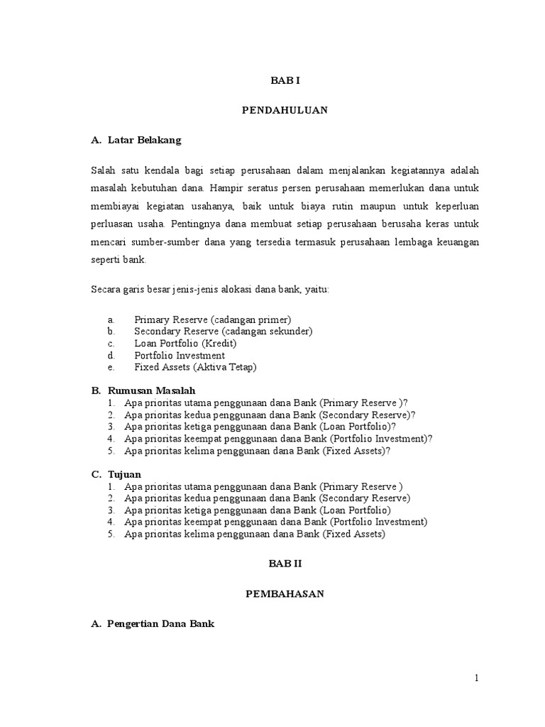 Sumber dana bank pengertian sumber dana bank adalah usaha bank dalam menghimpun dana dari masyarakat perolehan ini tergantung pada bank itu sendiri, apakah dari simpanan masyarakat atau dari lembaga lainnya. Bank adalah badan usaha yang menghimpun dana dari masyarakat dalam bentuk simpanan dan menyalurkannya kepada masyarakat dalam rangka meningkatkan taraf hidup masyarakat banyak. Penggunaan dana atau penanaman dana bank yang terakhir (meskipun tidak dikaitkan dengan strategi menjaga likuiditas bank) adalah penanaman modal dalam bentuk aktiva tetap (fixed assets), dana bank dapat digunakan untuk penanaman modal dalam bentuk aktiva tetap atau fixed assets.