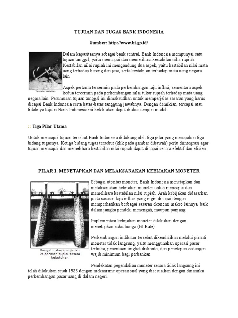 Tugas dan tujuan bank indonesia. 3 pilar tersebut adalah sebagai berikut.