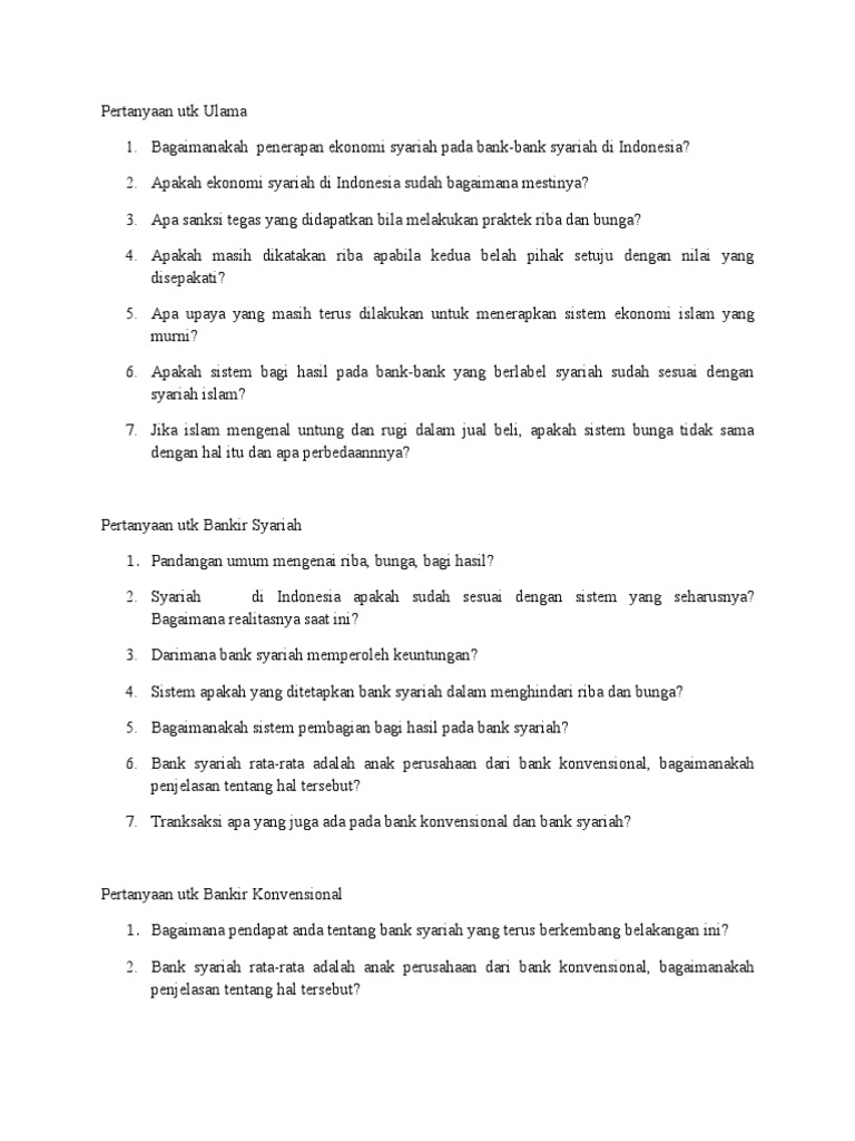 Pertanyaan Tentang Riba Dan Bunga Bank Seputar Bank