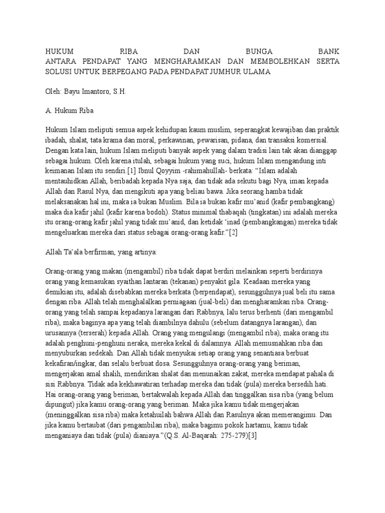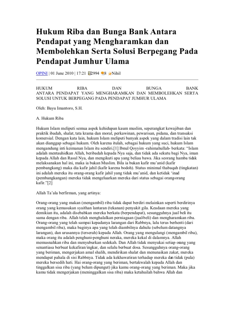 Hukum Riba Dan Bunga Bank Antara Pendapat Yang