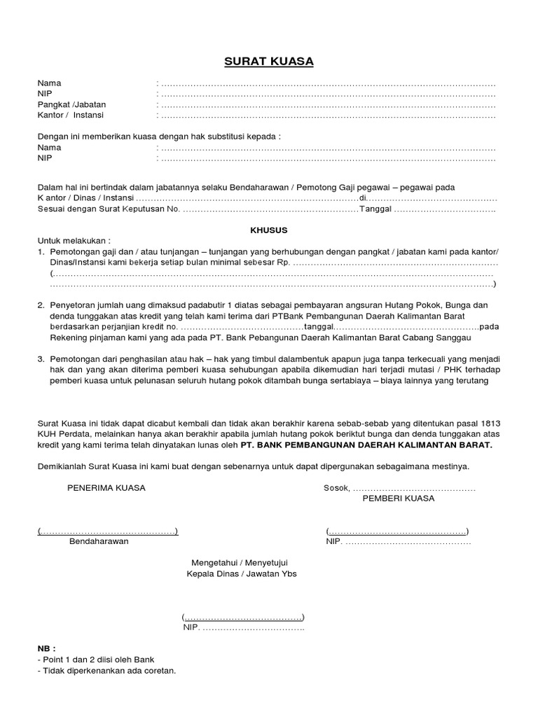 Contoh Surat Pernyataan Kuasa Peminjaman Uang Di Bank